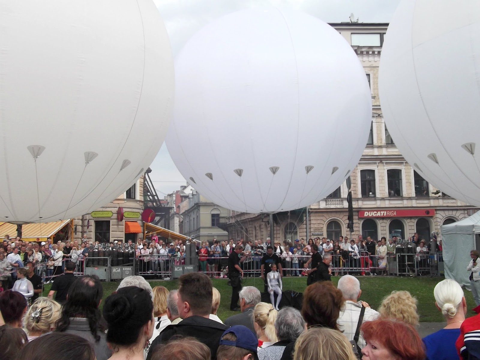 Город Рига, городская набережная. Праздник города 19 августа 2012 года. Шоу The Dream Engine воздухоплавателей из Великобритании. Шары наполнены гелием.